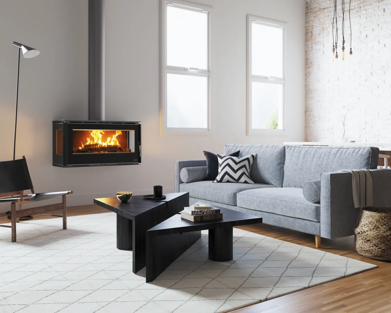 The RA85 & RA100 comes as either a wall mounted, freestanding or freestanding on log base. Models with fans, with a total flow of 720 m3/h. 3 positions switch: minimum speed, automatic mode and maximum speed. In automatic mode the fans switch-on when the temperature reaches 45º.